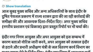 - इंदौर दूषित पेयजल प्रकरण पर सख्त कार्रवाई, नगर निगम आयुक्त-अपर आयुक्त को नोटिस